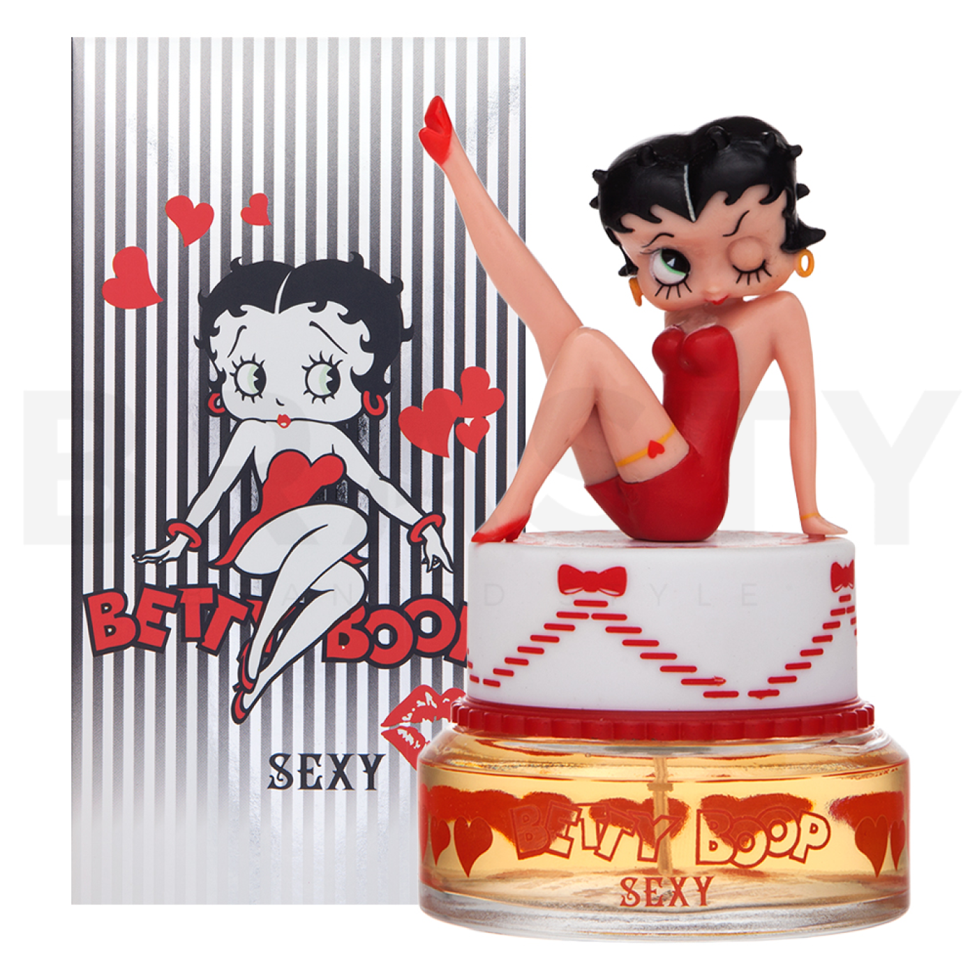 Objavte kúzlo Betty Boop s jej nezabudnuteľnou Sexy Betty parfumovanou vodou, ktorá sa stane vašou tajnou zbraňou na výnimočné večery plné elegancie a šarmu. Táto vôňa stelesňuje zmyselnosť a zvodnosť, ktoré sú synonymom pre ikonickú postavičku Betty Boop. Parfém je ukrytý v nádhernom flakóne, ktorý je rovnako hravý a pôvabný ako ona sama.