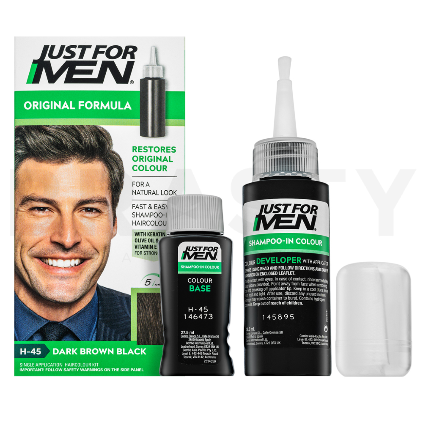 Just For Men Shampoo-in Haircolour je revolučný farebný šampón navrhnutý špeciálne pre mužov, ktorí chcú rýchlo a efektívne zakryť šediny. Tento produkt je ideálny pre tých, ktorí hľadajú prirodzený vzhľad bez zložitého procesu farbenia. Značka Just For Men je známa svojou špecializáciou na mužskú vlasovú starostlivosť a ponúka jednoduché riešenie pre každodenné potreby. Šampón v odtieni H45 Dark Brown Black poskytuje intenzívnu a dlhotrvajúcu farbu, ktorá sa ľahko aplikuje a prináša okamžité výsledky. Je ideálny pre mužov, ktorí chcú vyzerať mladšie a sebavedomejšie pri každodenných aktivitách alebo špeciálnych príležitostiach, ako sú pracovné stretnutia či spoločenské udalosti.