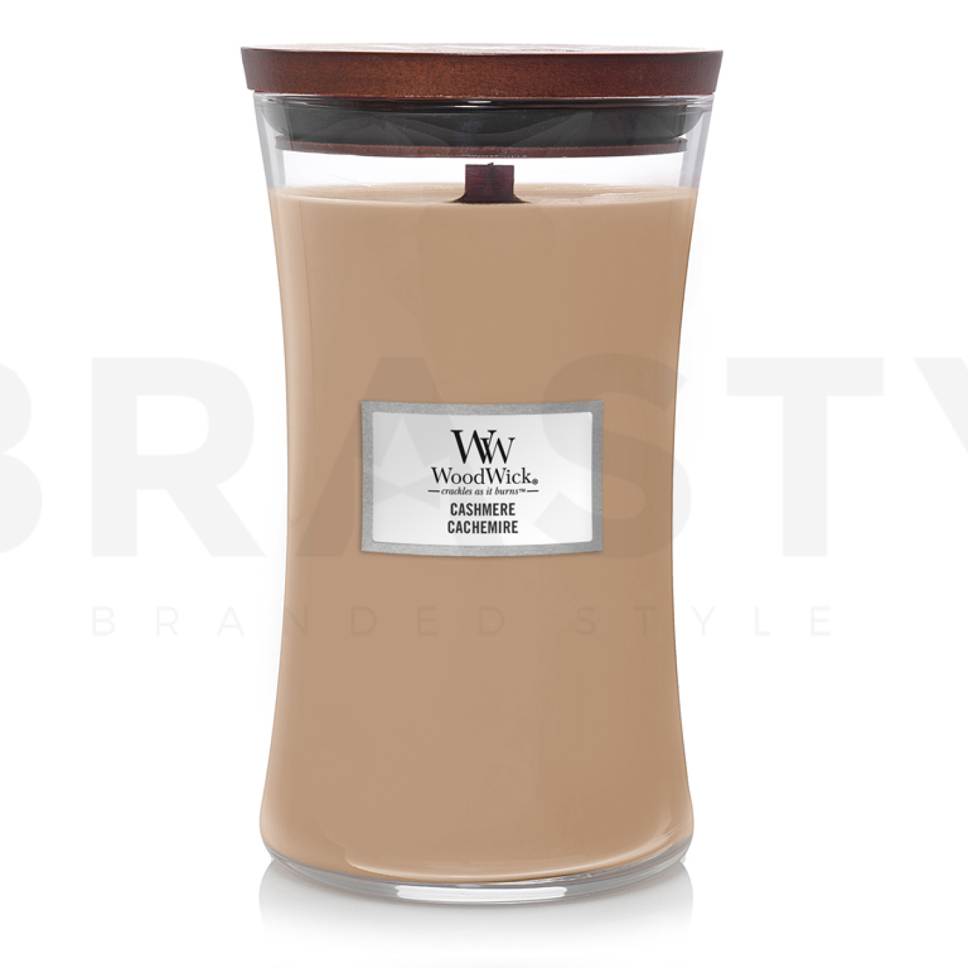Woodwick Cashmere 609,5 g je luxusná vonná sviečka, ktorá prináša do vášho domova pocit útulnosti a elegancie. Táto sviečka je súčasťou prestížnej kolekcie Cashmere od renomovanej značky Woodwick, ktorá je známa svojimi kvalitnými produktmi a inovatívnym dizajnom. Sviečka je vybavená unikátnym dreveným knôtom, ktorý pri horení vytvára jemný praskajúci zvuk pripomínajúci oheň v krbe. Táto vlastnosť nielenže umocňuje atmosféru, ale aj zaisťuje rovnomerné horenie a intenzívne uvoľňovanie vône.